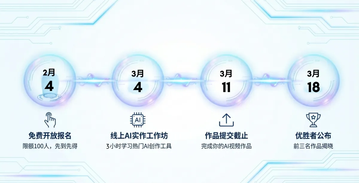 参赛作品须包含 AI 生成元素,但不得侵犯任何第三方知识产权(包括但不限于音乐、肖像、商标等)。如发生侵权争议,责任由参赛者自行承担。